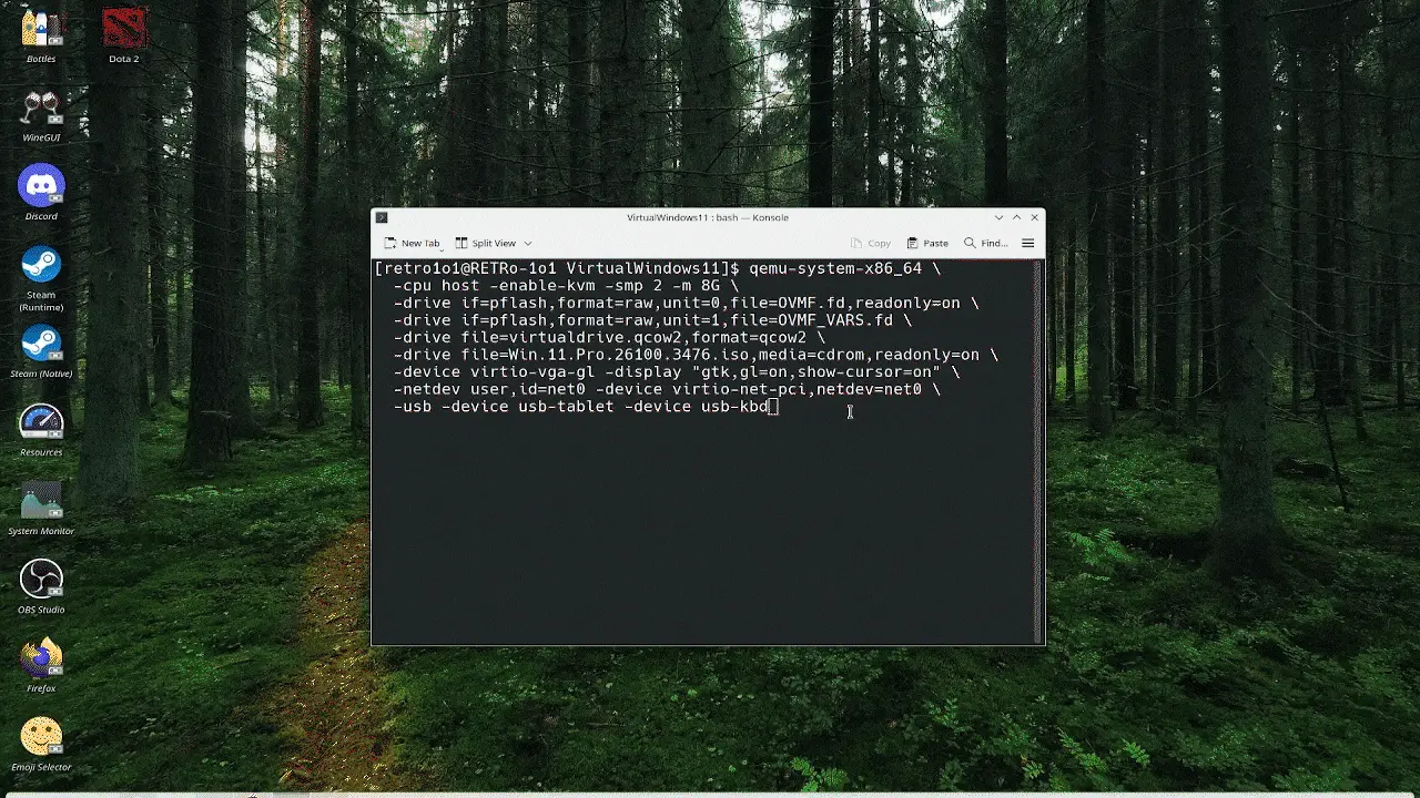 sudo apt install qemu-system-x86 qemu-utils libvirt-daemon-system libvirt-clients virt-manager virtinst dnsmasq-base libosinfo ovmf