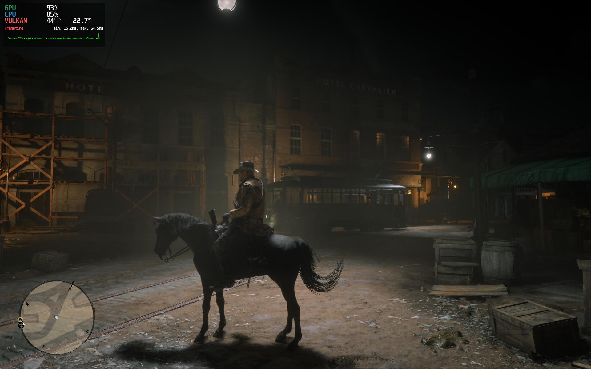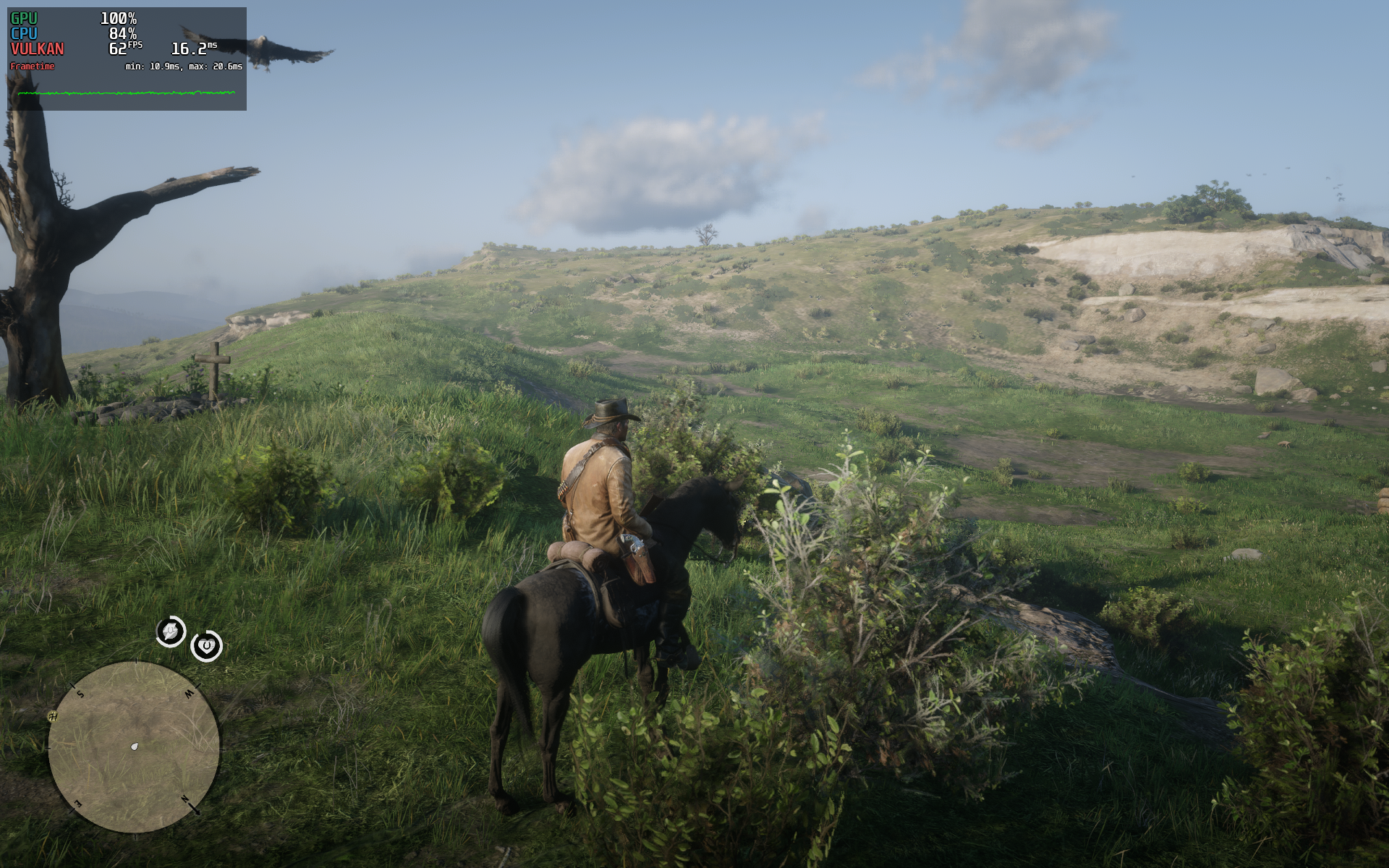 | RDR2 | 40-60 FPS, drops in cities | 60-70 FPS traversal, 38-45 in cities | Linux |