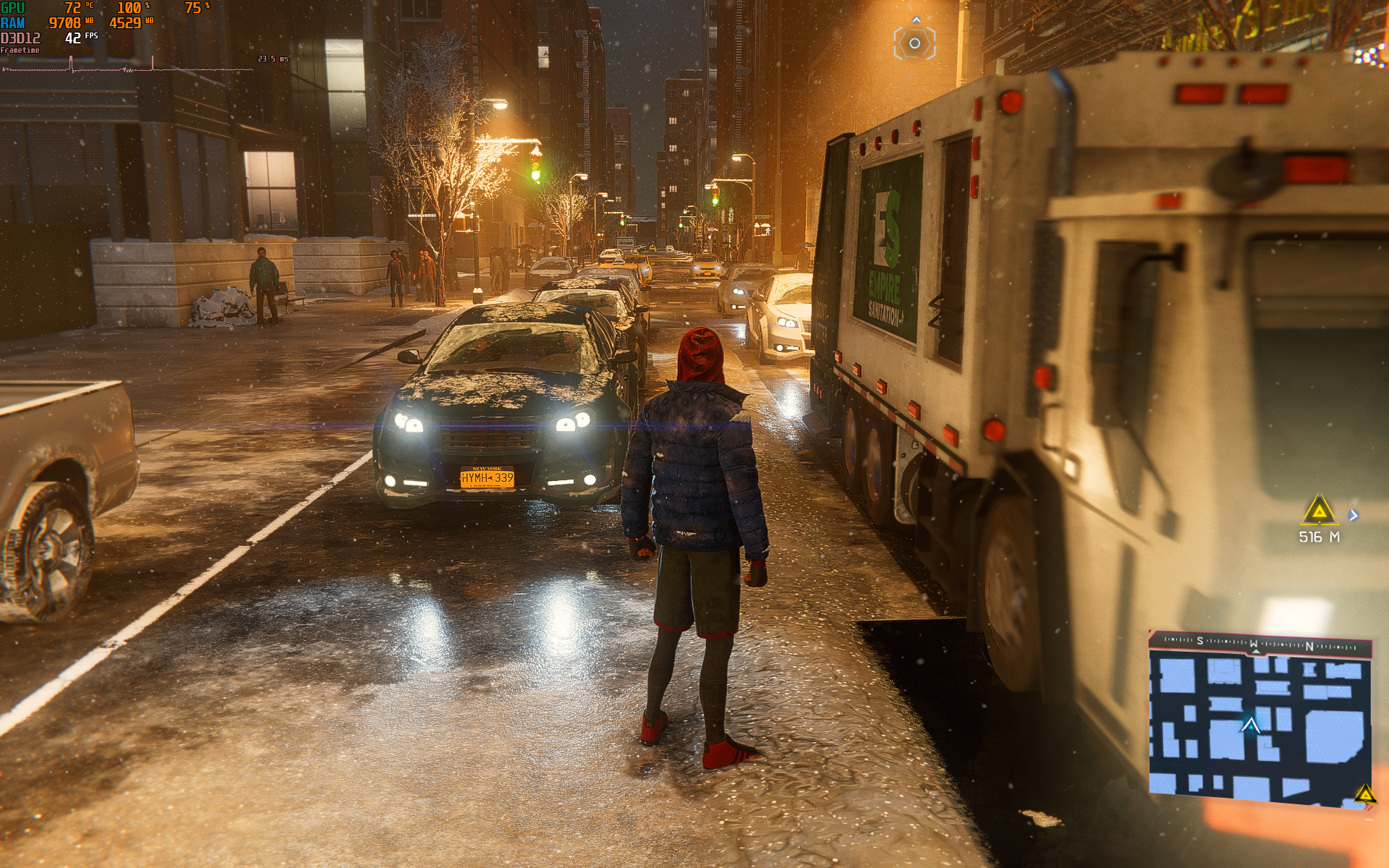 On Windows, with a mix of High and Medium settings plus AMD FSR 3.1 and frame generation, Miles Morales is unstable. It struggles to hit 60 FPS, mostly hovering in the mid‑40s, and frame times are all over the place.